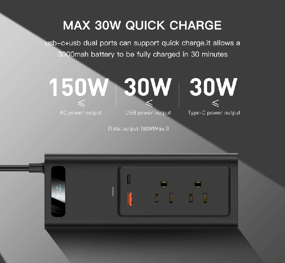 Type-C Output: 5V/3A,9V/3A, 12V/2.5A Max.