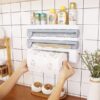 3 in 1 Paper Dispenser is convenient, quick, practical, and healthy for the kitchen. It helps you load paper towels, aluminum foil roll, and cling film in the same place and save your time and give it easy to maintain. And then help cutting rolls of any size manually. It is a great idea to store aluminum foil and paper towels, cling film in 1 dispenser in the kitchen. With its compact design, it saves space in the kitchen simple front-loading with a mountable paper towel rack easy to set up and refill.
