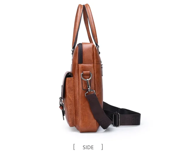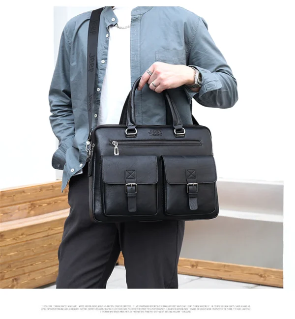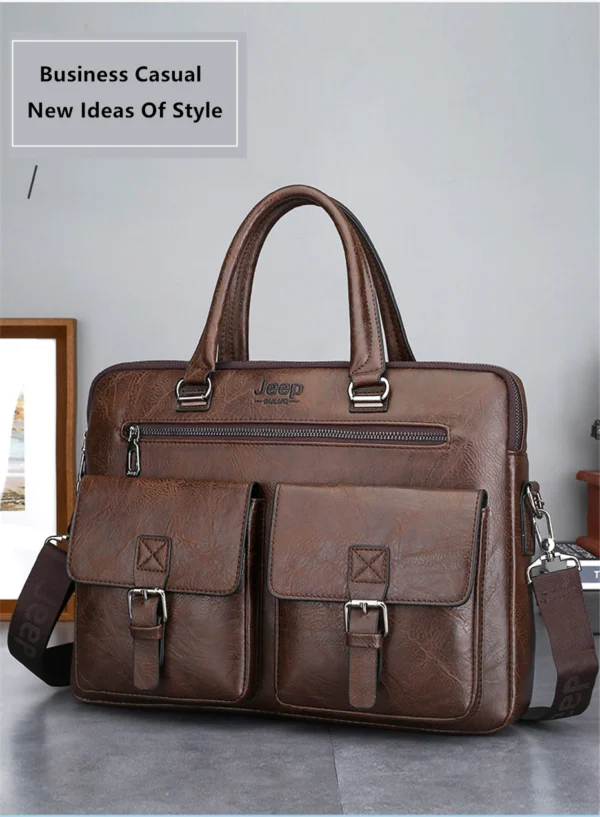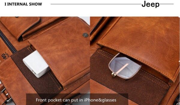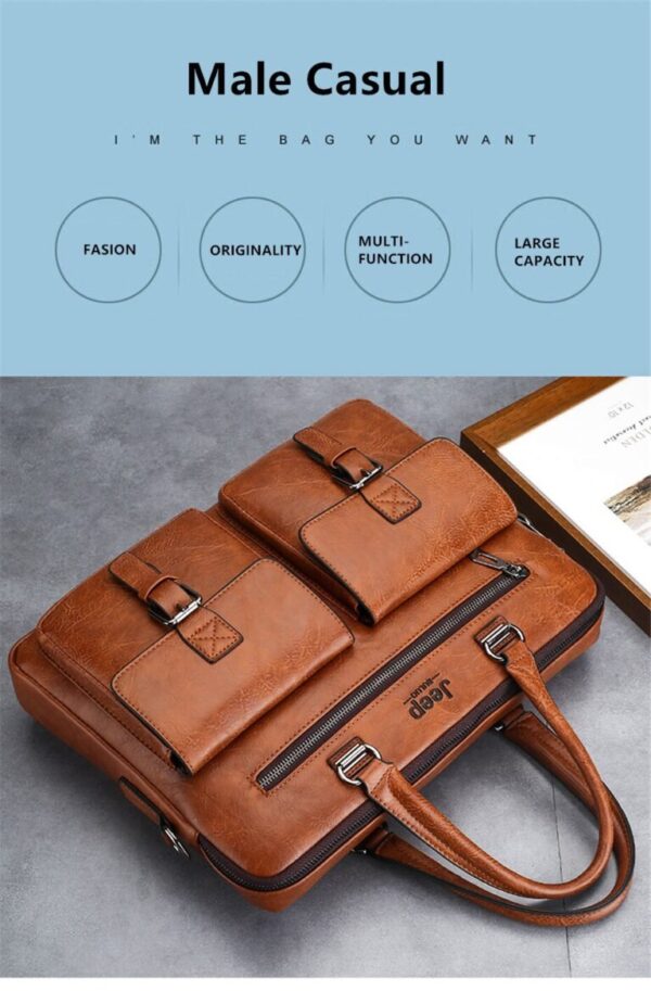 Leather pouch made from high quality materials which fits work with multiple pockets and laptop fits