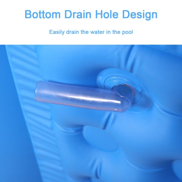 EASY TO SET UP: The inflatable pool is easy to set up – Simply spread out the pool sheet on the ground and inflate air into all the ports by electric pump (FREE electric pump included), Inflate in 3-4 minutes by electric pump; fill the pool with water or play balls and enjoy your pool. With a built-in drain adapter, you can fit it to any drain pipe and drain the water.