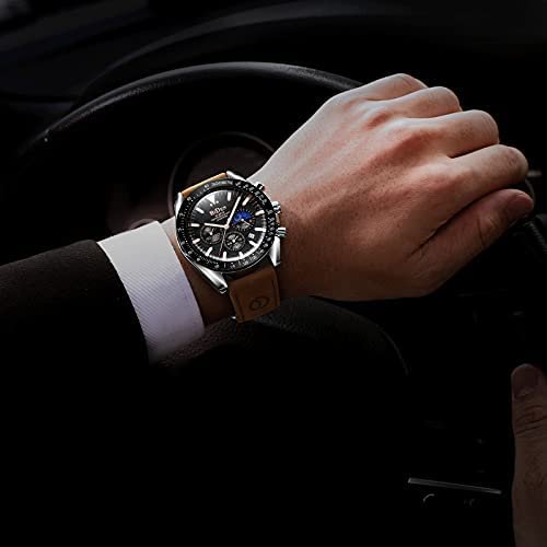 Quality Leather Strap – The band of this mens chronograph watch is made of high-quality leather. Breathable, durable and comfortable. Buckle clasp is easy to wear and not easy to fall off, which is suitable for all kinds of occasions.