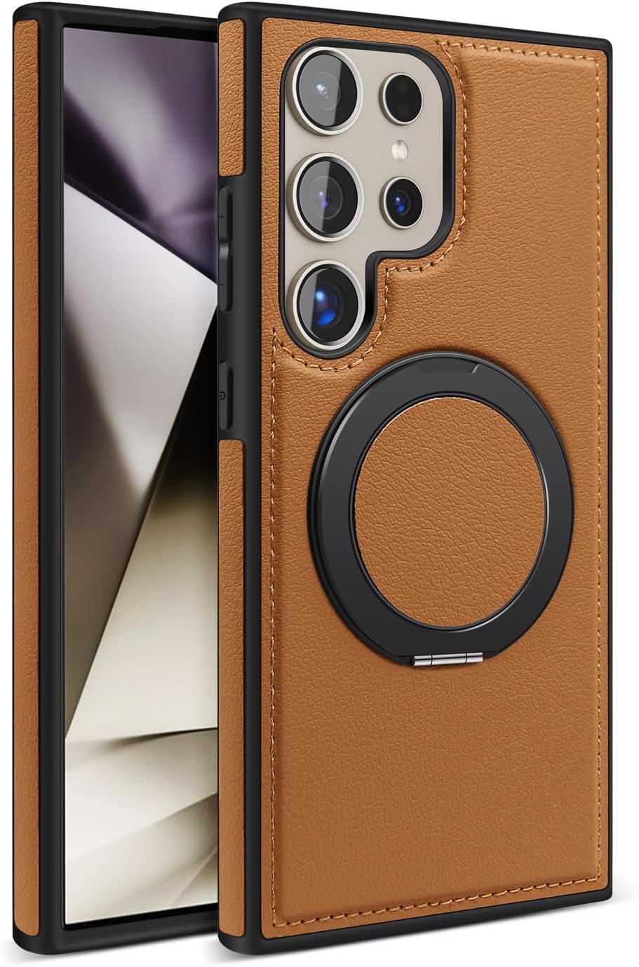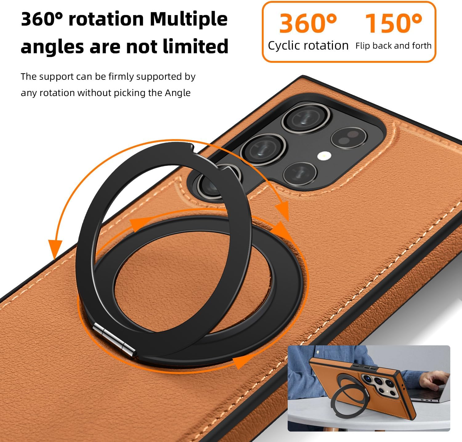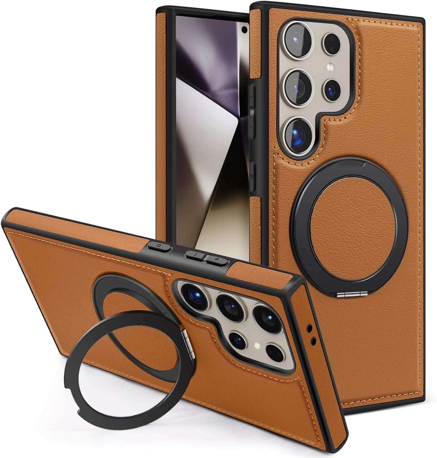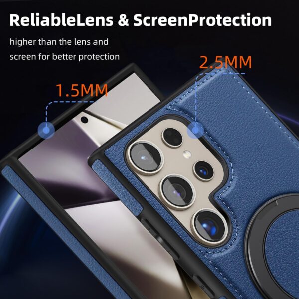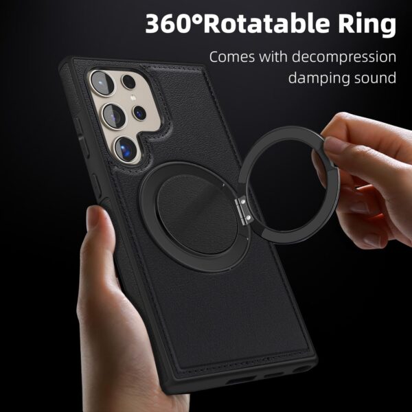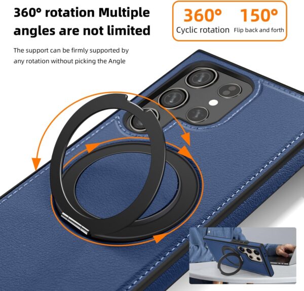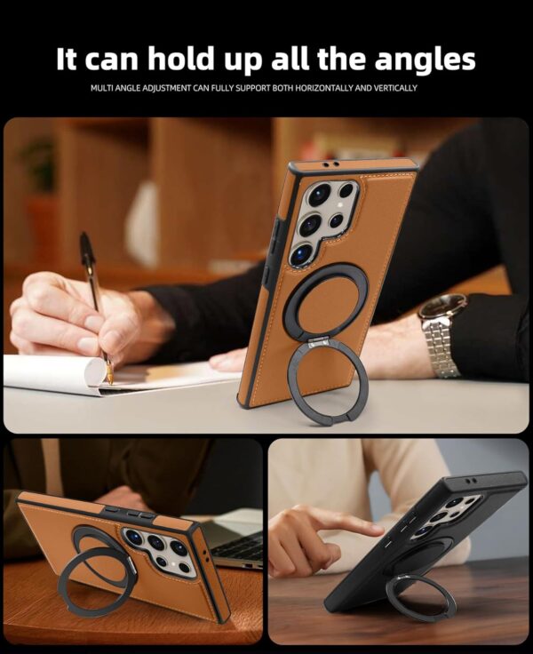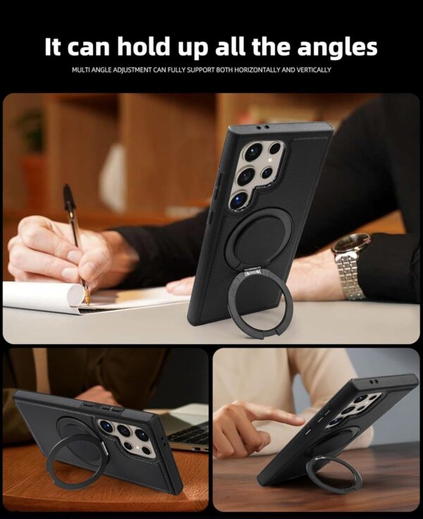 【360° Adjustable Viewing】 The case features a 360° rotating ring, allowing you to adjust the viewing angle freely for optimal comfort, whether you’re browsing, video chatting, or watching videos 【Durable and Protective】 Made from a combination of TPU and premium PU leather, this case provides robust protection against drops and bumps, ensuring your phone remains safe in daily use 【Enhanced Screen and Lens Protection】 With raised edges of 1.5mm around the screen and 2.5mm around the camera, this case offers superior protection, preventing scratches and damage when placed on flat surfaces 【Built-In Magnetic Ring】 The powerful magnetic core compatible with MagSafe and other magnetic accessories, ensuring secure attachment while allowing you to charge your phone conveniently 【All-Angle Kickstand Functionality】 The multi-angle adjustment capability of the ring holder supports both horizontal and vertical orientations, making it ideal for any viewing scenario 【Stylish and Practical Design】 The soft edge and perfect fit of this case combine style with practicality, providing reliable protection while maintaining an elegant appearance Note: Sometimes the colour we have posted might get finished, if so, we will deliver the other colours posted in the product’s gallery. Usually the second colour and if it’s finished too, we deliver the third colour