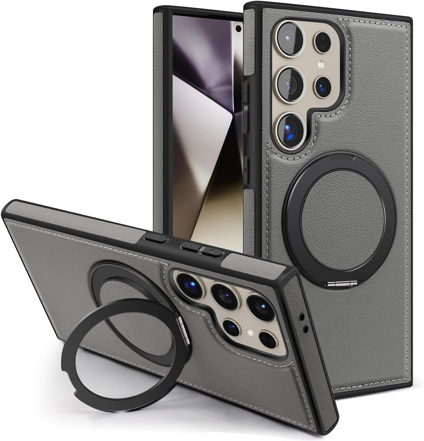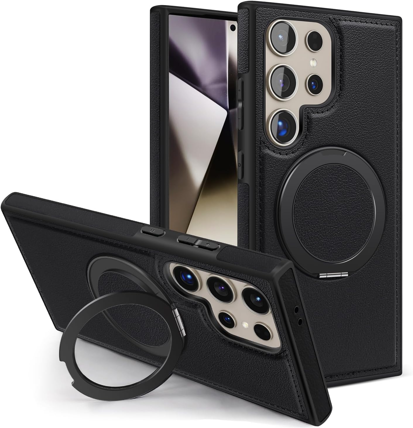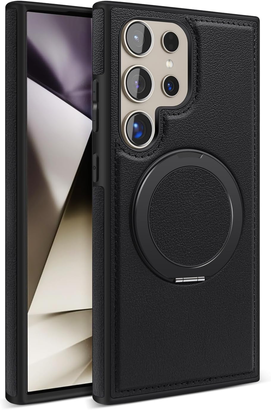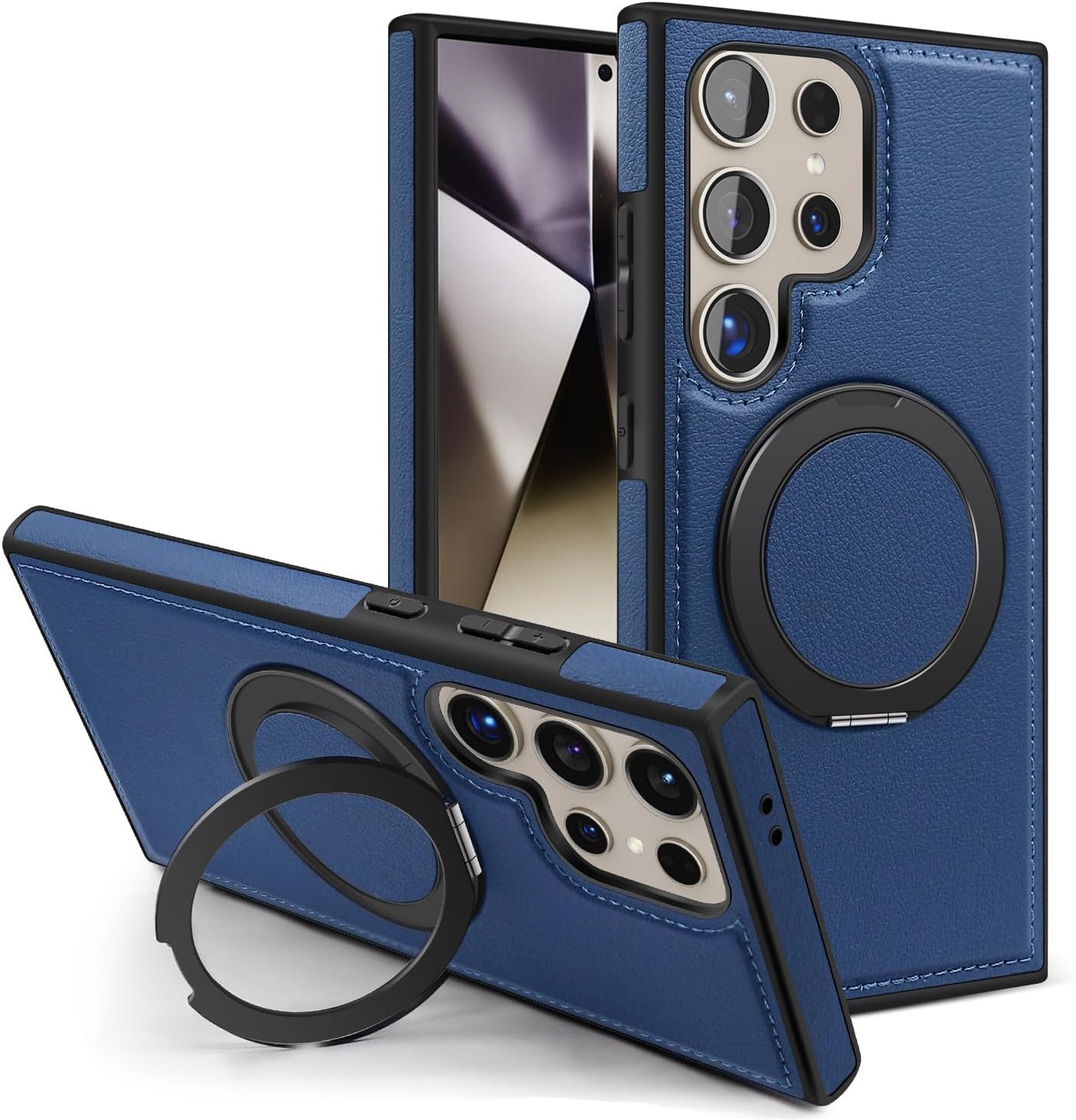 【360° Adjustable Viewing】 The case features a 360° rotating ring, allowing you to adjust the viewing angle freely for optimal comfort, whether you’re browsing, video chatting, or watching videos 【Durable and Protective】 Made from a combination of TPU and premium PU leather, this case provides robust protection against drops and bumps, ensuring your phone remains safe in daily use 【Enhanced Screen and Lens Protection】 With raised edges of 1.5mm around the screen and 2.5mm around the camera, this case offers superior protection, preventing scratches and damage when placed on flat surfaces 【Built-In Magnetic Ring】 The powerful magnetic core compatible with MagSafe and other magnetic accessories, ensuring secure attachment while allowing you to charge your phone conveniently 【All-Angle Kickstand Functionality】 The multi-angle adjustment capability of the ring holder supports both horizontal and vertical orientations, making it ideal for any viewing scenario 【Stylish and Practical Design】 The soft edge and perfect fit of this case combine style with practicality, providing reliable protection while maintaining an elegant appearance Note: Sometimes the colour we have posted might get finished, if so, we will deliver the other colours posted in the product’s gallery. Usually the second colour and if it’s finished too, we deliver the third colour