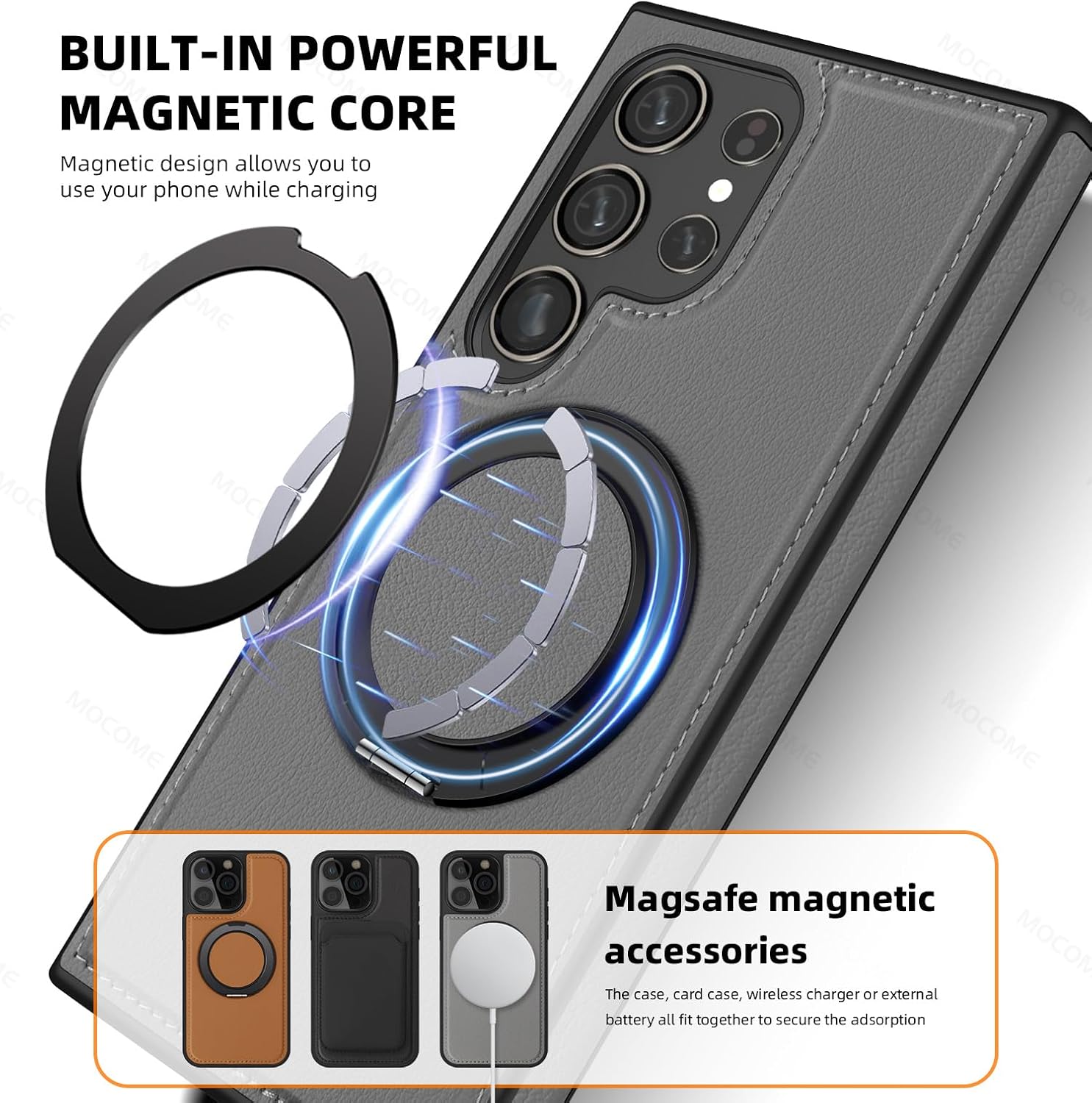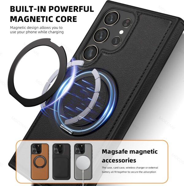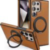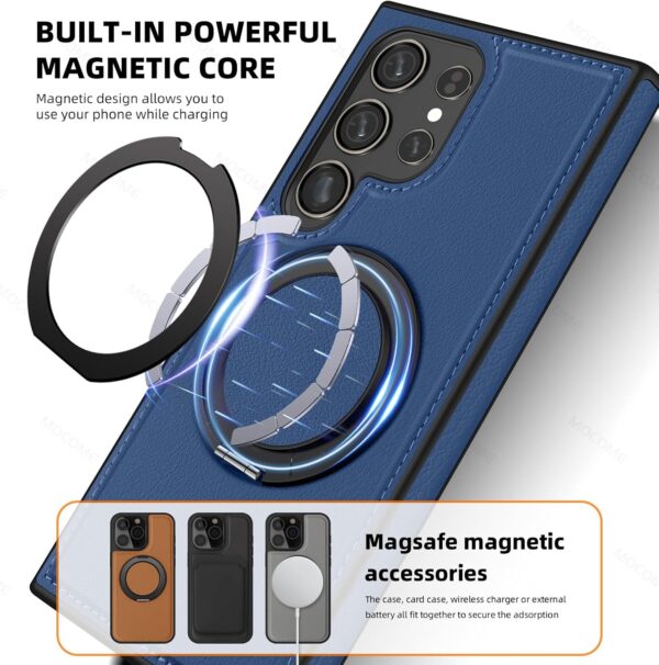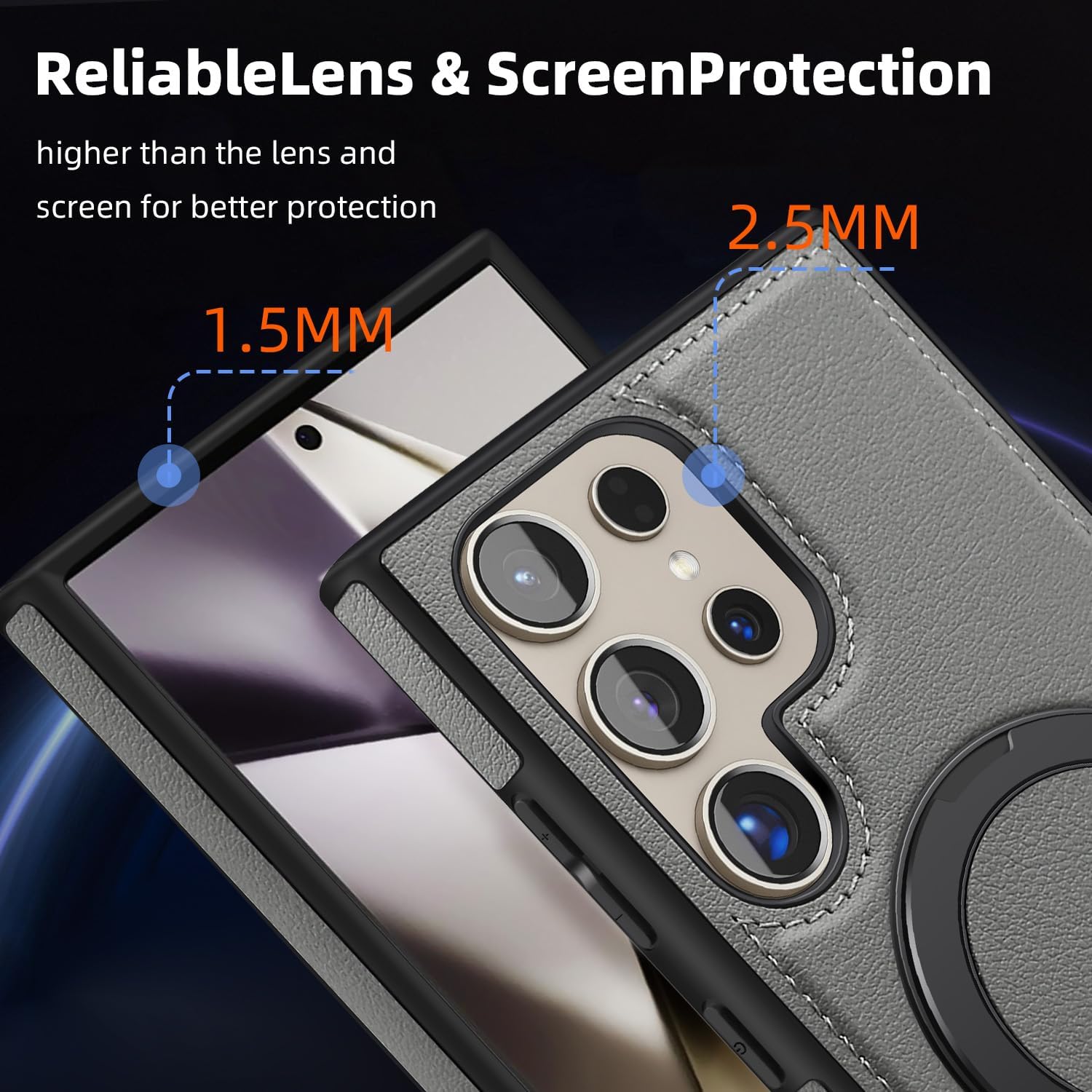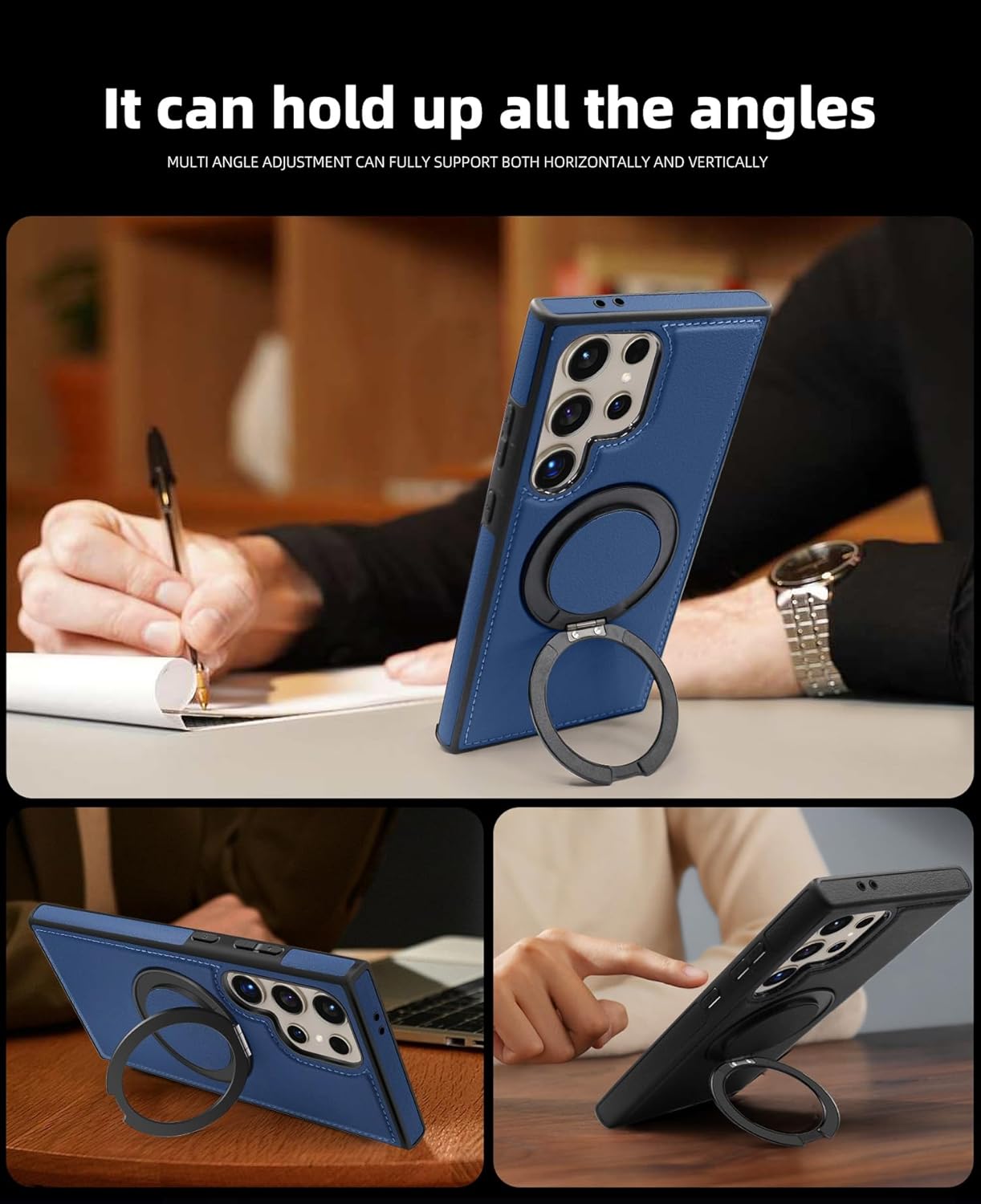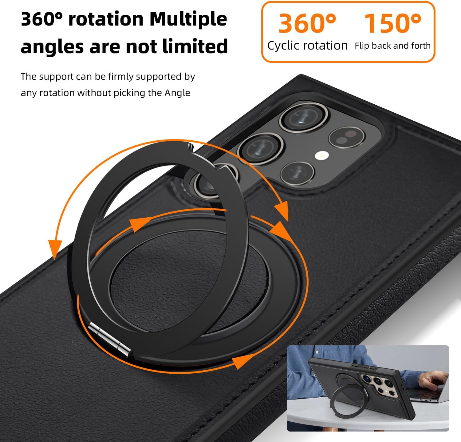 【360° Adjustable Viewing】 The case features a 360° rotating ring, allowing you to adjust the viewing angle freely for optimal comfort, whether you’re browsing, video chatting, or watching videos 【Durable and Protective】 Made from a combination of TPU and premium PU leather, this case provides robust protection against drops and bumps, ensuring your phone remains safe in daily use 【Enhanced Screen and Lens Protection】 With raised edges of 1.5mm around the screen and 2.5mm around the camera, this case offers superior protection, preventing scratches and damage when placed on flat surfaces 【Built-In Magnetic Ring】 The powerful magnetic core compatible with MagSafe and other magnetic accessories, ensuring secure attachment while allowing you to charge your phone conveniently 【All-Angle Kickstand Functionality】 The multi-angle adjustment capability of the ring holder supports both horizontal and vertical orientations, making it ideal for any viewing scenario 【Stylish and Practical Design】 The soft edge and perfect fit of this case combine style with practicality, providing reliable protection while maintaining an elegant appearance Note: Sometimes the colour we have posted might get finished, if so, we will deliver the other colours posted in the product’s gallery. Usually the second colour and if it’s finished too, we deliver the third colour
