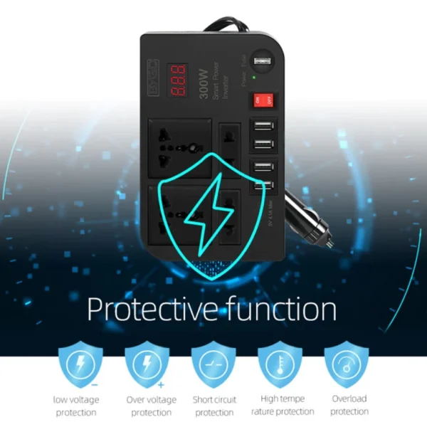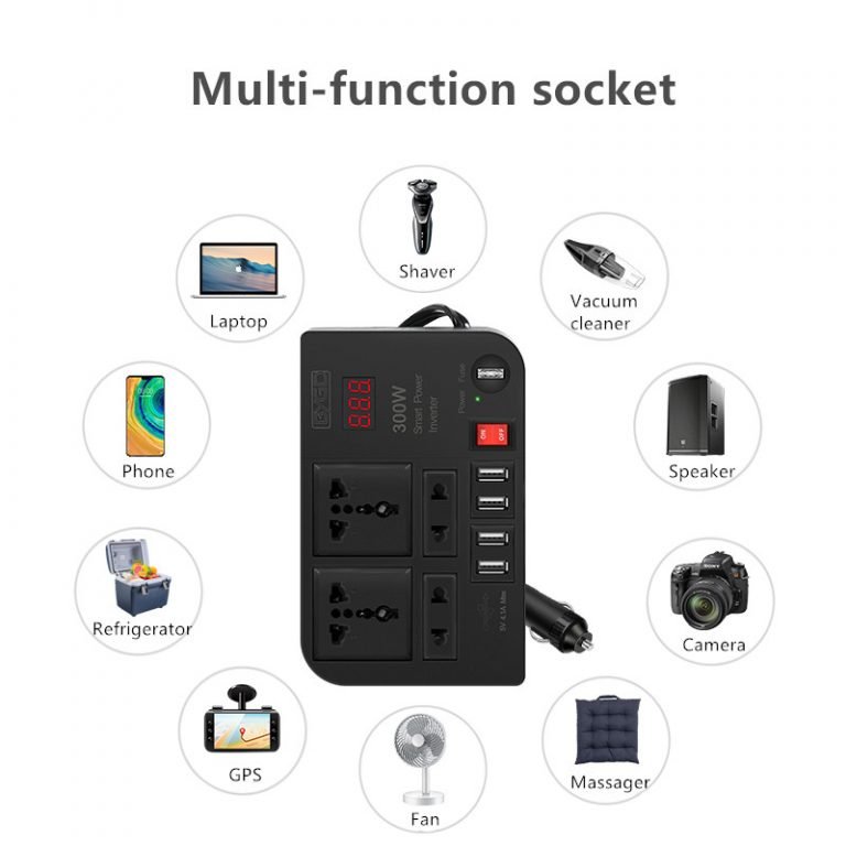 COMPACT AND LIGHTWEIGHT DESIGN: Only 6.2×3.9×1.6 Inches space saving Compact Size ideal for use on vacations, work trips, and camping. Long cigarette lighter plug makes the power inverter can be plugged into almost any vehicle.